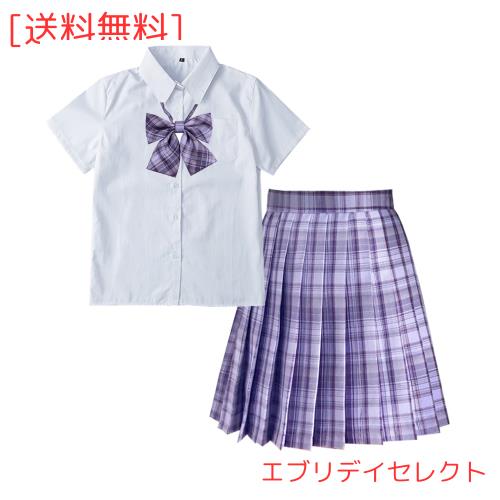 [SYRHSYB] 制服 スカート ミニ プリーツスカート コスプレ 写真撮影 パーティー衣装 JKスカート 白いシャツ リボン スクールスカート3点