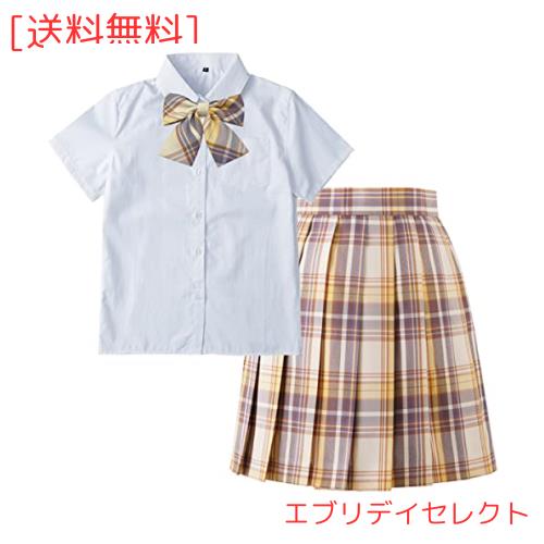 SYRHSYB 制服 スカート ミニ プリーツスカート コスプレ 写真撮影 パーティー衣装 JKスカート 白いシャツ リボン スクールスカート3点セット