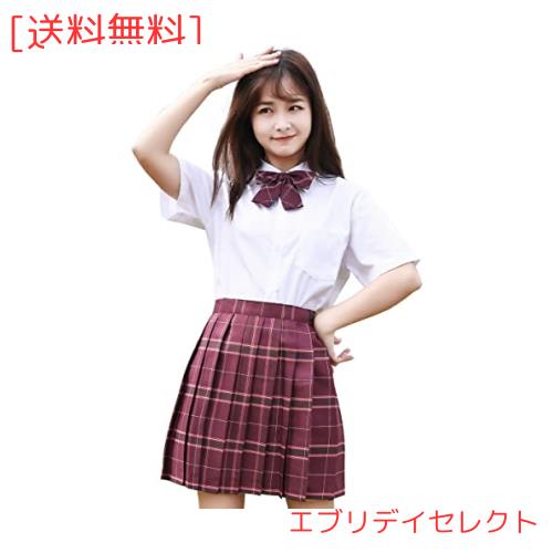 SYRHSYB 制服 スカート ミニ プリーツスカート コスプレ 写真撮影 パーティー衣装 JKスカート 白いシャツ リボン スクールスカート3点セット