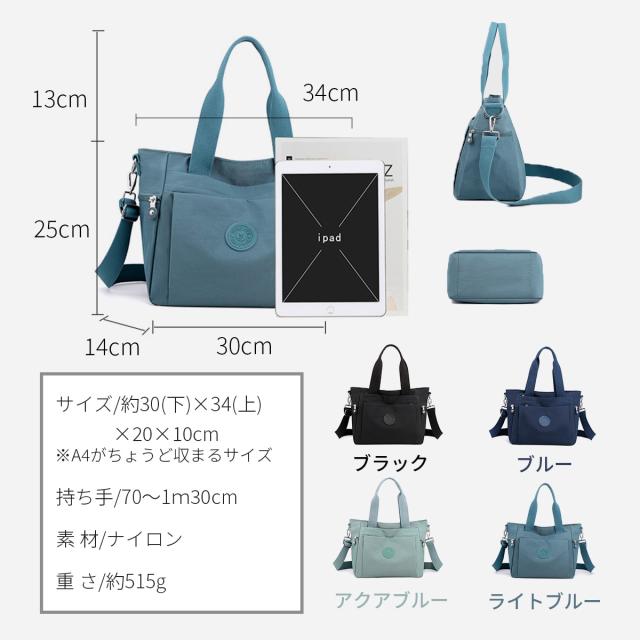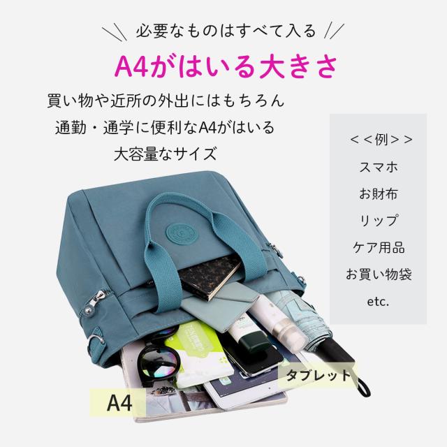 ショルダーバッグ レディース 軽い 斜めがけ a4 ナイロン 2way トート 撥水 小さめ バック 鞄 大容量 ハンドバッグ カバン 斜め掛け 軽量 シンプル 肩掛け 通勤 通学 かわいい ビジネス 整理整頓 マザーズ 40代 50代 60代