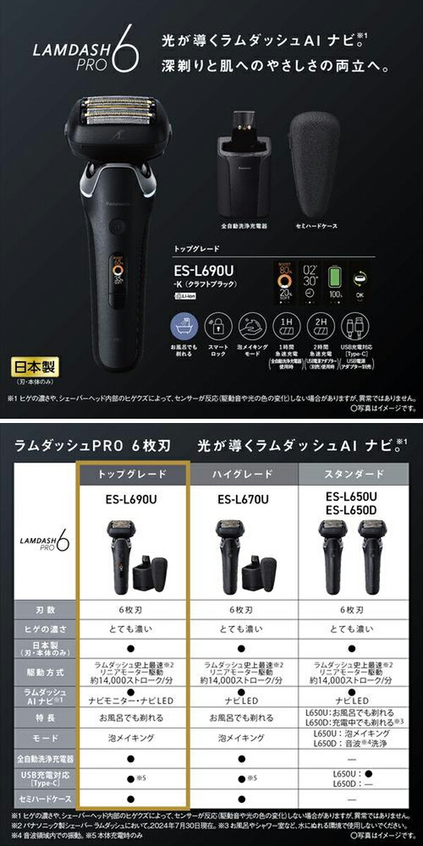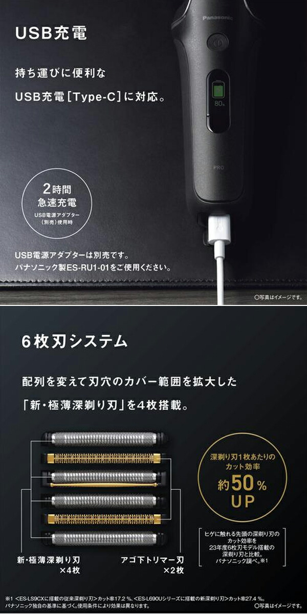 パナソニック ラムダッシュPRO 6枚刃 ES-L690U-K クラフトブラック