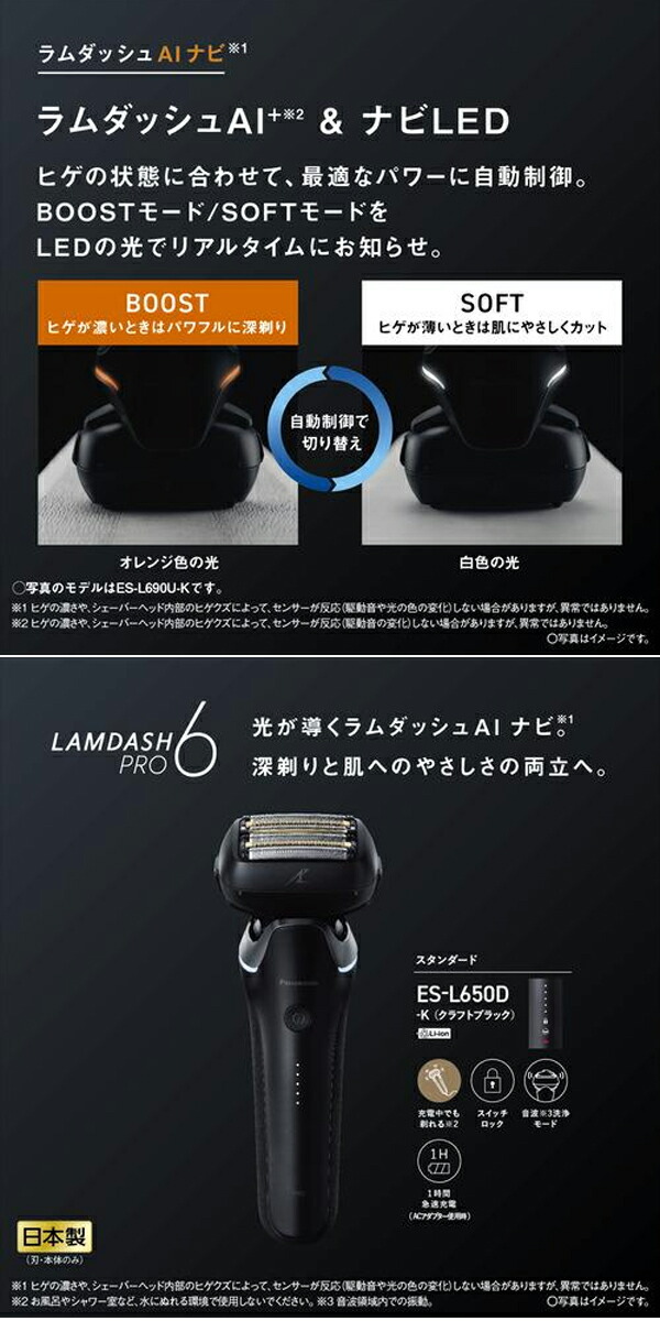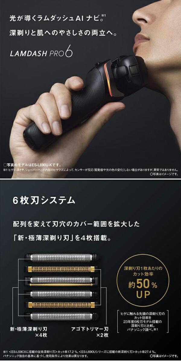 パナソニック ラムダッシュPRO 6枚刃 ES-L650D-K クラフトブラック 電動シェーバー 深剃り 肌に優しい