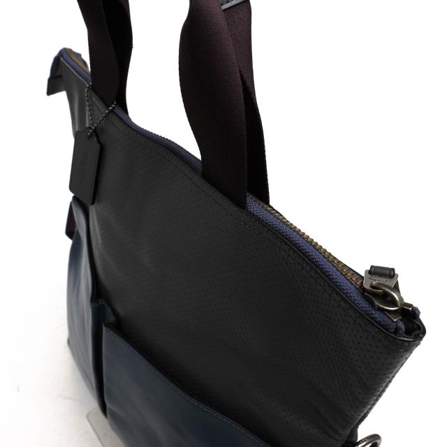 ○コーチ COACH パンチングレザー カーフ 牛革 トートバッグ F57569 Charles Foldover Tote チャールズ フォールドオーバー トート 中古
