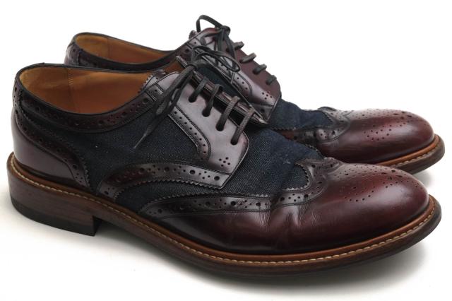 ○ヴィトン Louis Vuitton 牛革 ビジネスシューズ MT0186 ウイングチップ デニム レザーソール メンズ 【中古】 中古