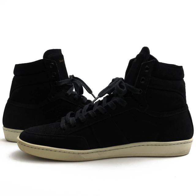○サンローラン YVES SAINT LAURENT PARIS パリ 牛革 ハイカットスニーカー 418026 Court Classic SL/10H ストライプ 定番 メンズ 中古