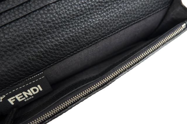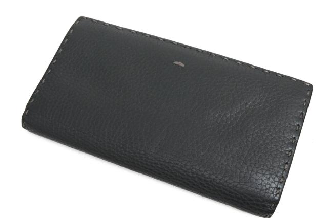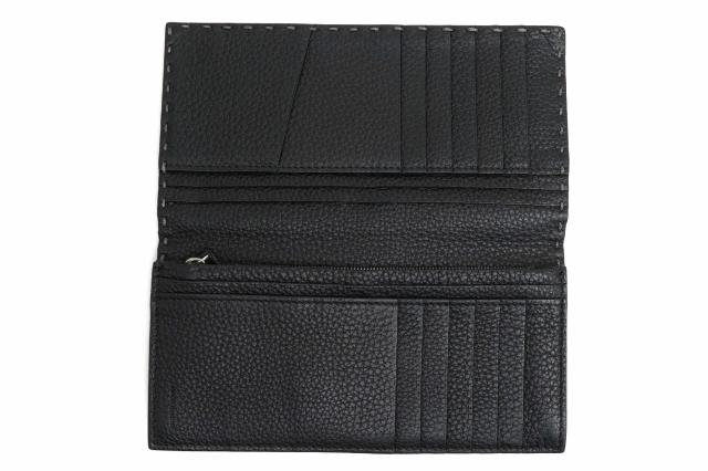 ○フェンディ FENDI 牛革 カーフ 長財布 7M0186 SELLERIA CONTINENTAL セレリア コンチネンタル ステッチ刺繍 小銭入れあり シボ革 中古