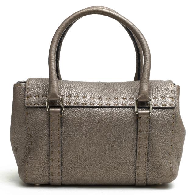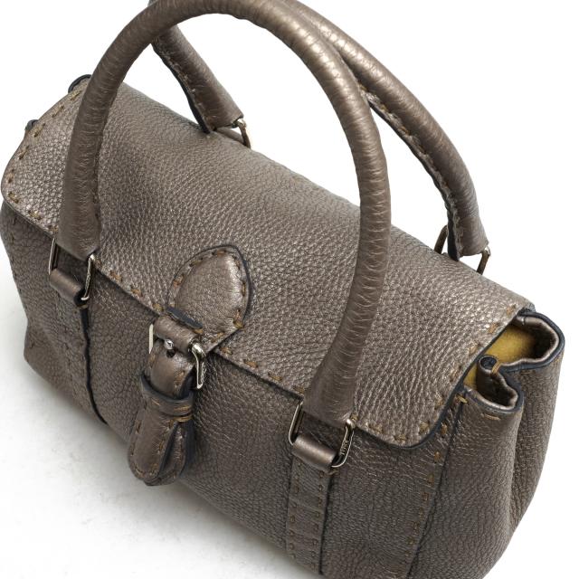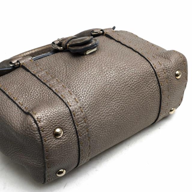 ○フェンディ FENDI 牛革 カーフ ハンドバッグ selleria セレリア ミニ リンダ フラップ式 シボ革 シュリンクレザー ミニボストン 中古