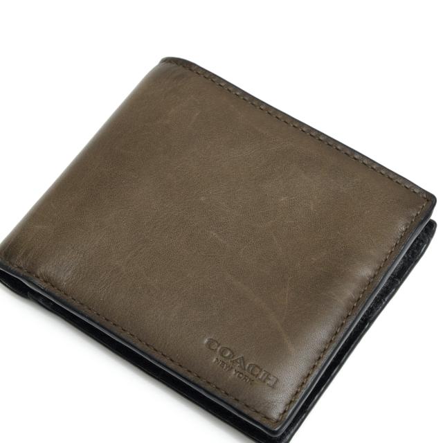 ○コーチ COACH スポーツカーフ 牛革 財布 74896 コンパクト ID ウォレット 小銭入れなし 札入れ 二つ折り メンズ 【中古】 中古