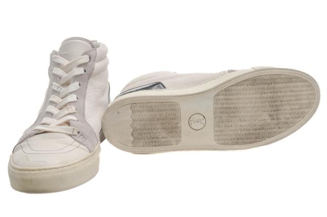 質感の異なるレザーのコンビネーション、かかと部分にはステッチで施されたブランドネーム、またタンにはブランドロゴYSLが刻印され、ブランドアピールもバッチリです。履き口部分は、分厚くクッション性があり、履き心地も抜群。高級感あふれるハイクオリティな作りなのに、カジュアルな装いにも合わせやすいハイカットスニーカーです。