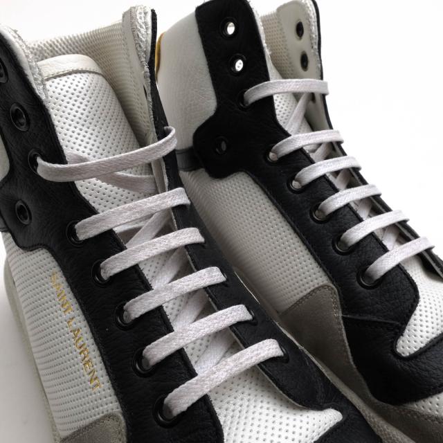 ○サンローラン YVES SAINT LAURENT 牛革 カーフ ハイカットスニーカー 610618 SL24 High-Top Perforated Leather Sneakers メン 中古