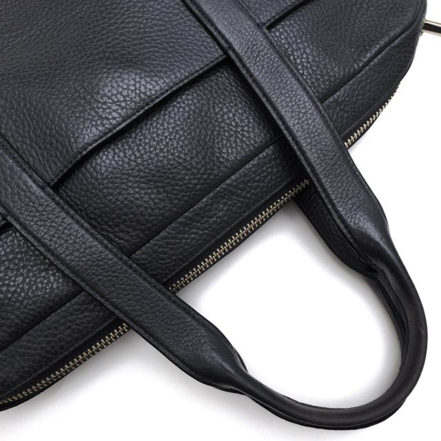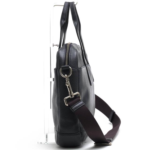 キズや汚れがつきにくいシボ感の美しいペブルドレザーを使用し、薄型で普段のビジネスユースに最適なデザイン。フロントにはさり気なくブランドロゴの型押しがあり高級感を演出。B4サイズが収納可能で、細かな小物を収納できるスペースを多数装備されています。
