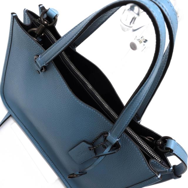 最新技術を駆使して作られたぺブルレザーを素材に使用し、伝統的なクラフトマンシップが反映された2wayのサッチェルバッグ。バッグ内部は、11インチのiPad ProやCOACH長財布など、必要なアイテムをスマートに収納できるよう設計されています。中央のジップポケットを含む3つのコンパートメントや両サイドのオープンポケットが、整理整頓をサポートします。さらに、独特な"C"ロゴのチャームがデザインのアクセントとなっています。ぺブルレザーは、耐久性が高く、傷や汚れが目立ちにくい上質な素材。上品さを求めつつ、耐久性や実用性も重視したい方におすすめのモデルです。