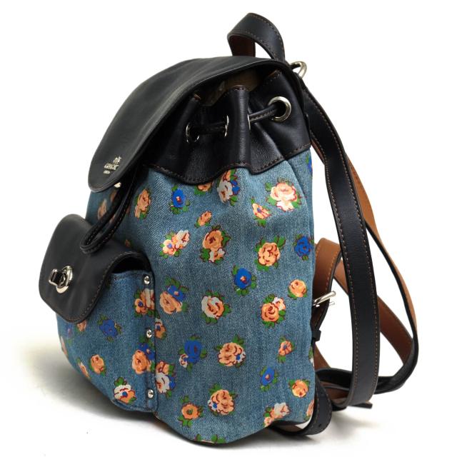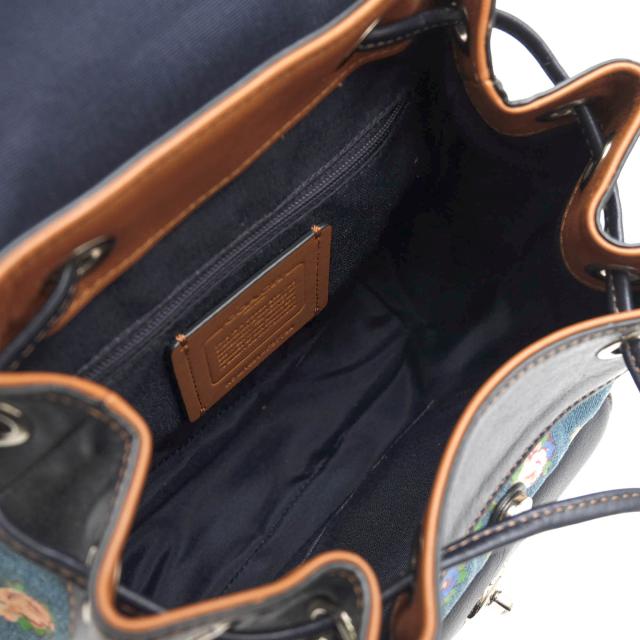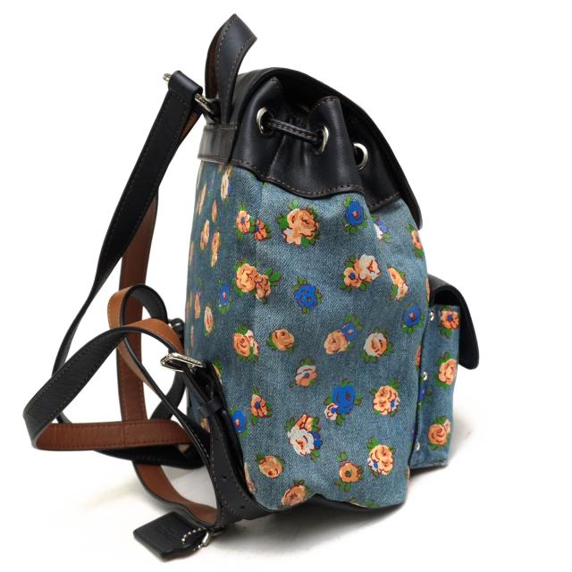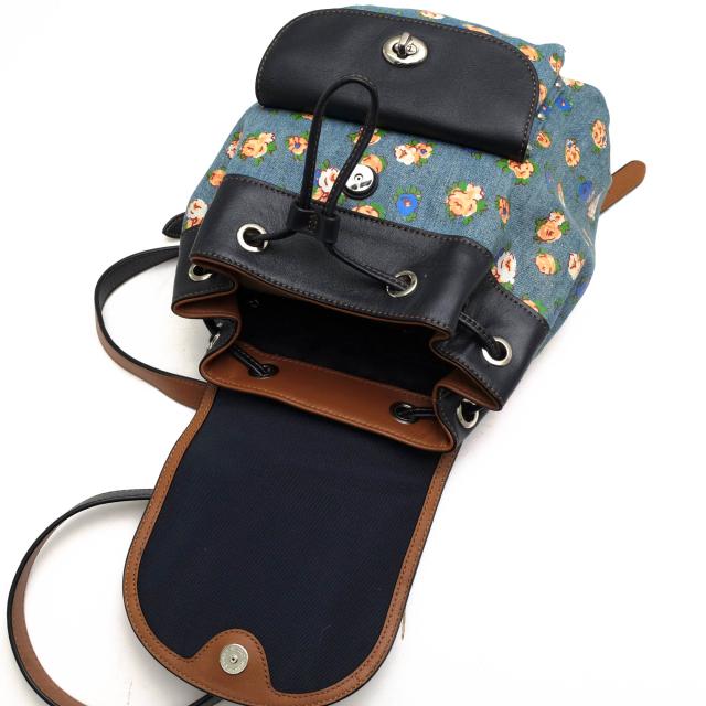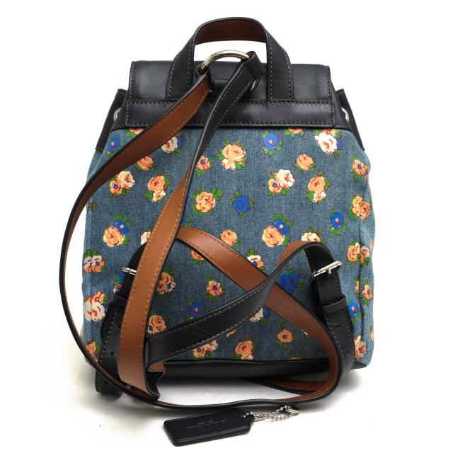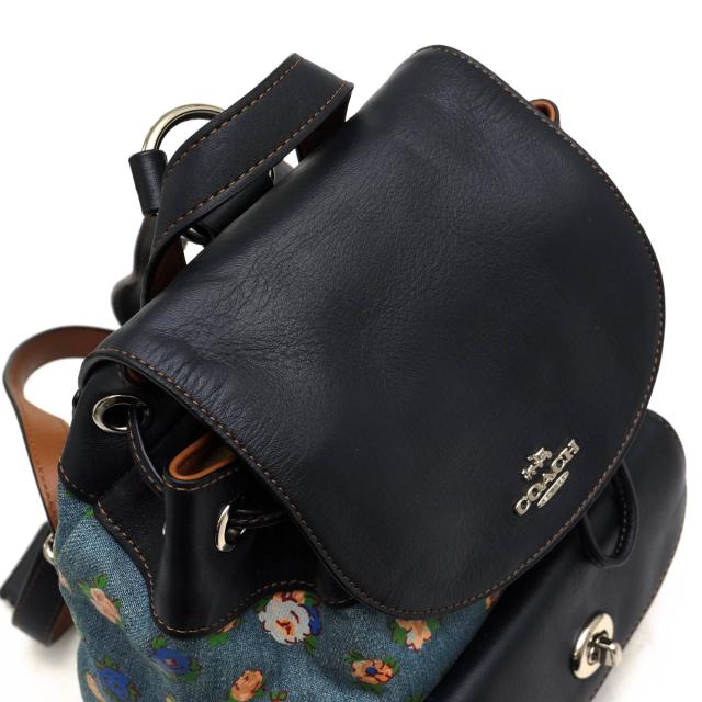○コーチ COACH 一部牛革 リュック F57754 MINI BILLIE BACKPACK IN PRINTED DENIM AND LEATHER ミニ ビリー バックパック フロー 中古