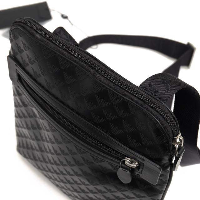 ○アルマーニ EMPORIO ARMANI 牛革 カーフ ショルダーバッグ YC043 Y4M167 PIATTINA VITELLO STAMPA ALL OV イーグルロゴ メンズ 中古