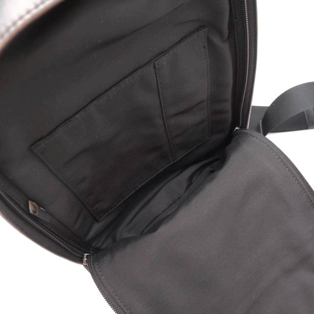 スムースカーフで仕上げたコンパクトでスタイリッシュなデザイン。フロント部分にはブランドロゴ金具がアクセントになっており、ジップ部分にもブランド刻印があります。カジュアルながら高級感があり、普段使いに最適。ちょうど良いサイズ感で、財布やスマートフォンなどの小物はもちろんのこと、タブレットなども収納可能です。