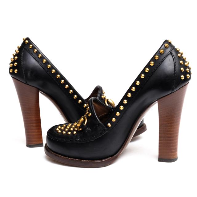 ○グッチ GUCCI パンプス 313111 ビットローファー型 スタッズ ハイヒール レディース 【中古】 中古