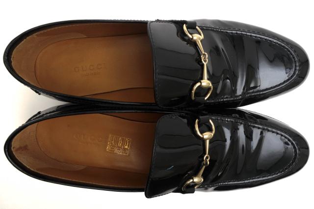 ○グッチ GUCCI 牛革 カーフ ビットローファー 283644 BNC00 1000 Vernice Crystal ホースビット 定番 レディース 【中古】 中古