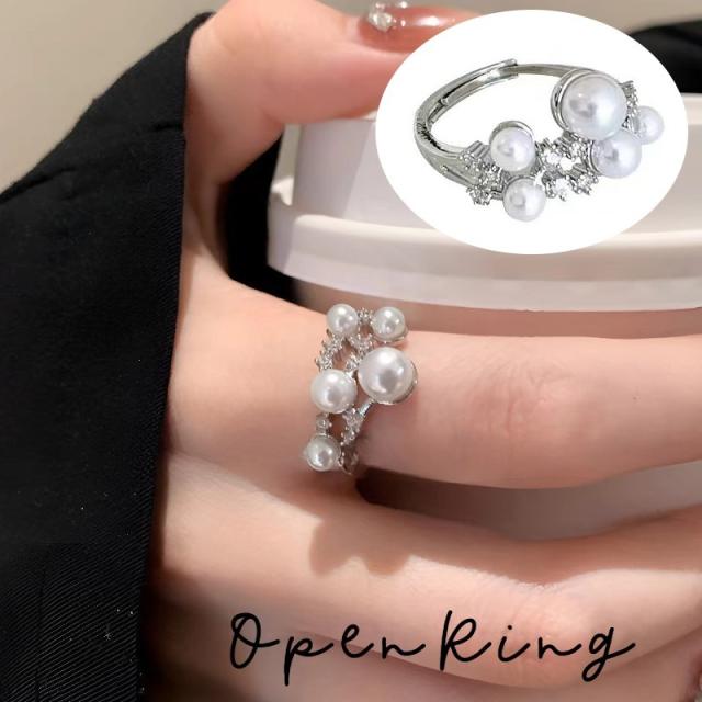 指輪 レディース 女性 婦人 アクセサリー 指飾り オープンリング ラインストーン フェイクパール 2連 おしゃれ 上品 きれい