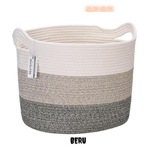 Sea Team 大きいサイズ 収納バスケット 収納かご 洗濯かご ランドリーバスケット ロープバスケット コットンロープバスケット 持ち手付き