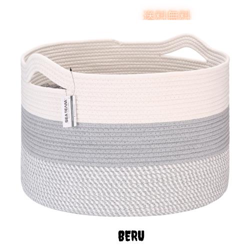 Sea Team ランドリー収納 コットンロープバスケット 収納かごバ スケット 持ち手付き ランドリー ランドリーバスケット 収納ボックス 洗