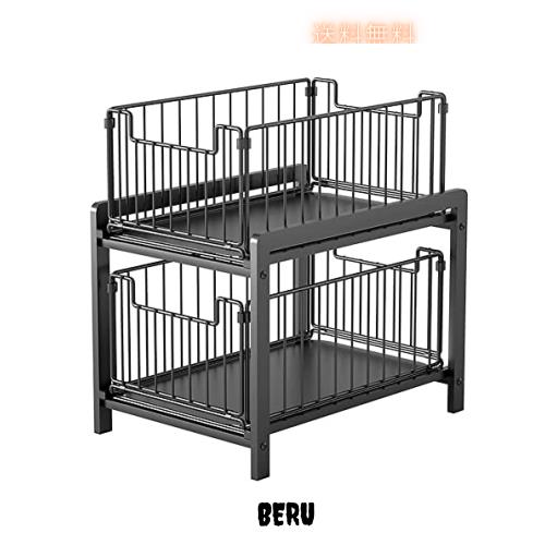 ◆商品名:キッチン収納 スライドラック シンク下収納 キッチンラック シンク下 調味料収納ラック 台所収納 隙間収納 省スペース 組立簡単 2段 ブラ