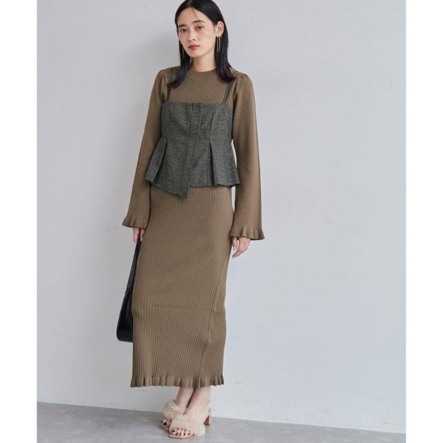 【SET】ビスチェセット裾ミニフリルリブニットワンピース