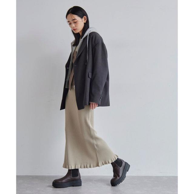 裾と袖口にフリルがついているのでストンとしたIラインシルエットのポイントに!