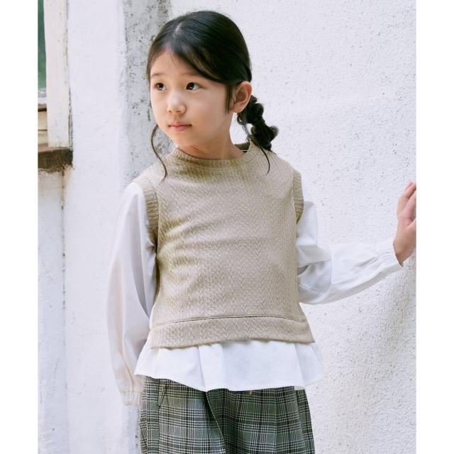 【親子コーデ】ケーブル柄レイヤードプルオーバー(120?160cm)