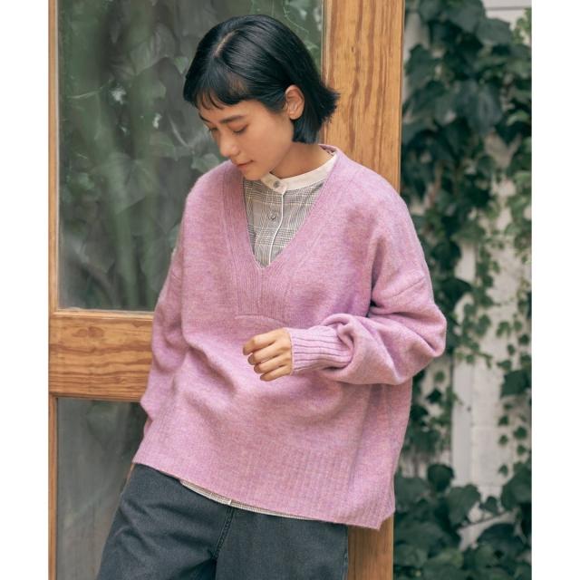 ライン使いのVネックで、一枚でも着映え感のあるニットプルオーバー。