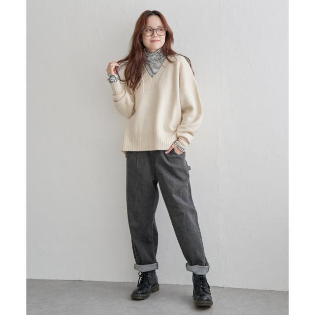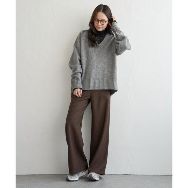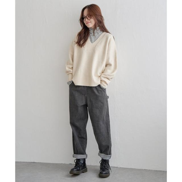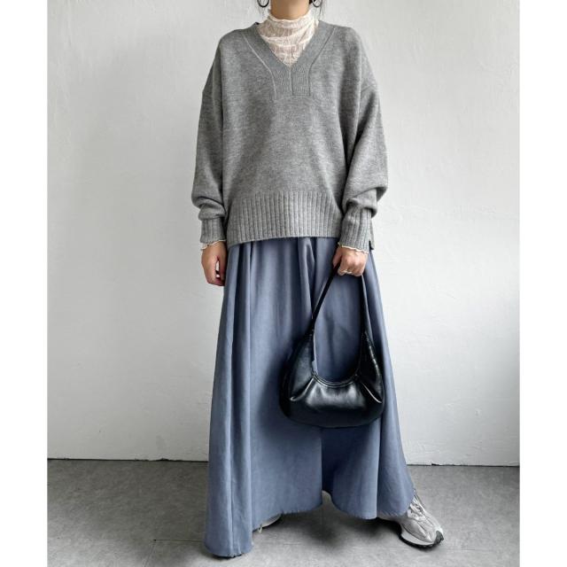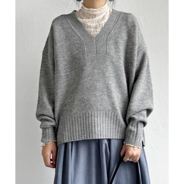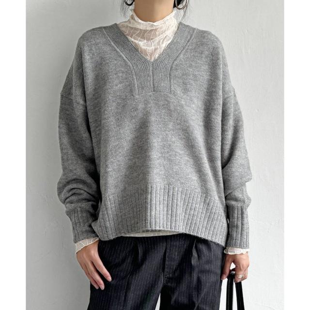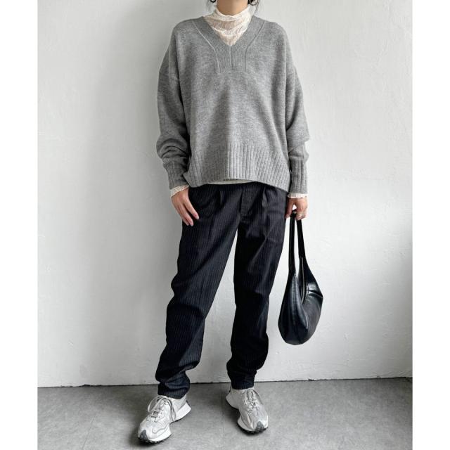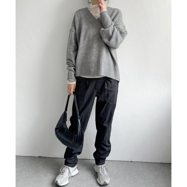 ほどよくゆとりのあるシルエットと、深めのVネックで抜け感ある着こなしができます。