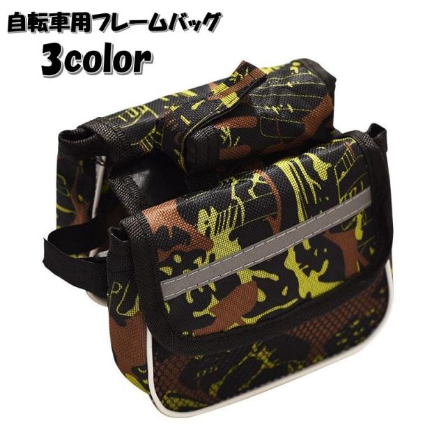 フレームバッグ サイクルバッグ 自転車バッグ スマホ収納 小物入れ ポーチ 反射材付き 迷彩 おしゃれ サイクリング マウンテン