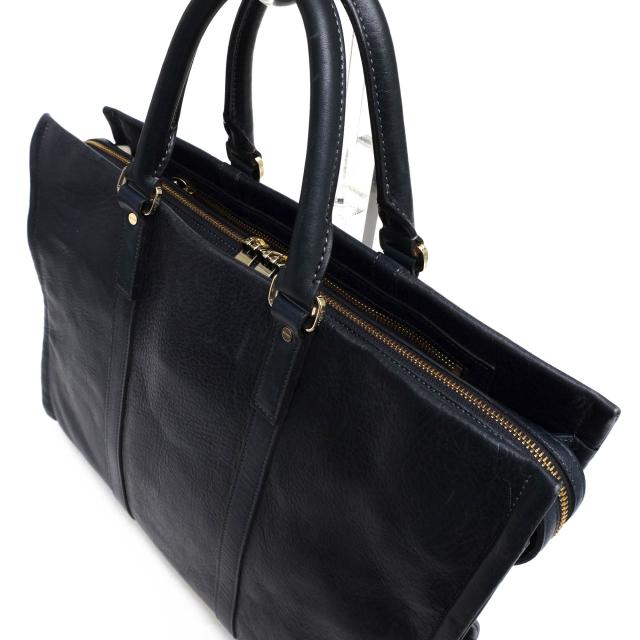 こなれた質感のアンティークレザーを贅沢に使用、ダブルファスナーで開口は広めでアクセスしやすく、芯材で補強したファスナー部分は沈まず開閉が安易にできます。デザイン性が損なわれてしまうのでショルダーストラップはなくし、ストイックなビジネスマンにおすすめなブリーフバッグです。
