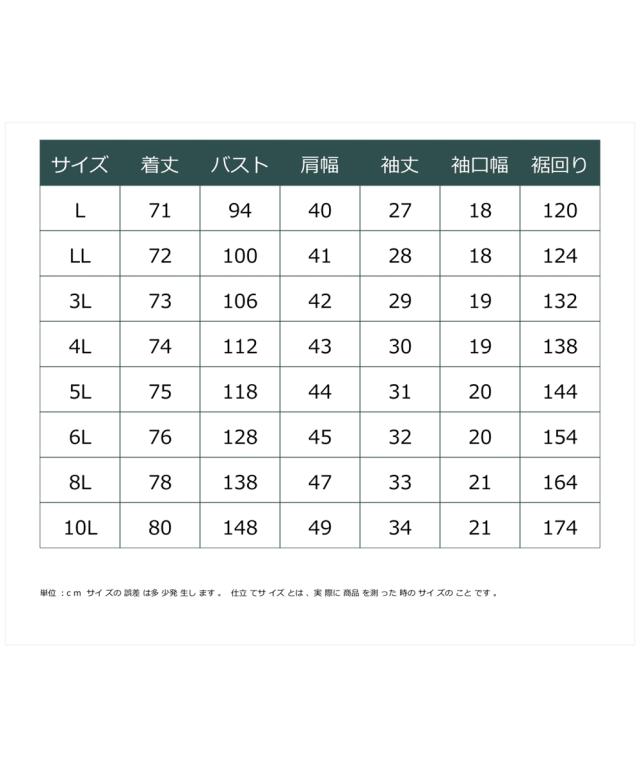 品質=ポリエステル100% 両脇スリット透け感:なし(淡色は透けやすいのでインナーの着用をお勧めします)伸縮性:あり生地の厚み:普通光沢感:なし季節:春・夏・秋シルエット:普通※照明の関係により、実際よりも色味が違って見える場合があります。またパソコン・スマートフォンなどの環境により、若干製品と画像のカラーが異なる場合もございます。あらかじめご了承のうえ、ご注文ください。 原産国:中国製 備考:洗濯機OK ※単位:cm ※サイズの誤差は多少発生します。 ※仕立てサイズとは、実際に商品を測った時のサイズのことです。