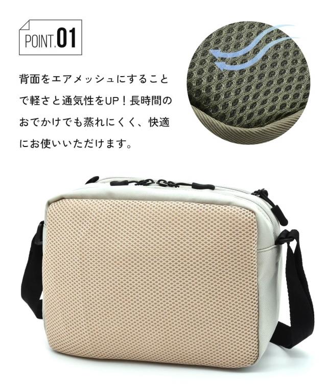 両面撥水(はっすい)生地を使用し、しかも軽量で便利 。 様々なおでかけシーンで使いやすいミニショルダーバッグです。 体に添う背面がメッシュになっているので、蒸れにくく快適です。 内側のメッシュのオープンポケットと外側のファスナーポケットで収納上手に。 ■デザイン コンパクトながらマチ幅が広いので必要なものを持ち運べます。 「anello GRANDE」のブランドロゴがワンポイントになったデザインです。 ■素材 ポリエステル素材を使用しております。 ■コーディネート シンプルなデザインと落ち着きのあるカラーバリエーションでデイリーコーディネートに寄り添います。