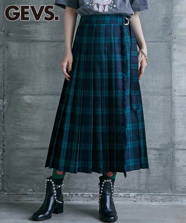 チェックプリーツロングスカート GEVS.(大きいサイズ対応)