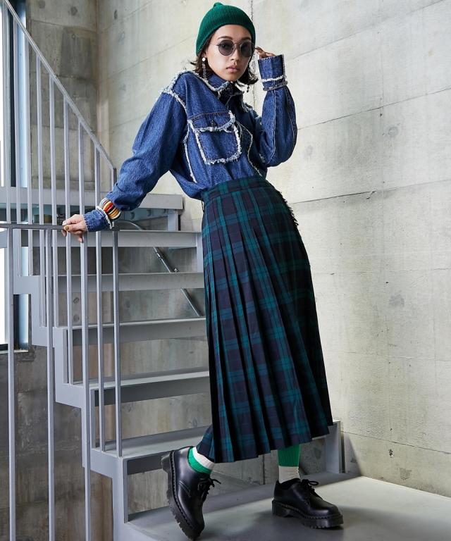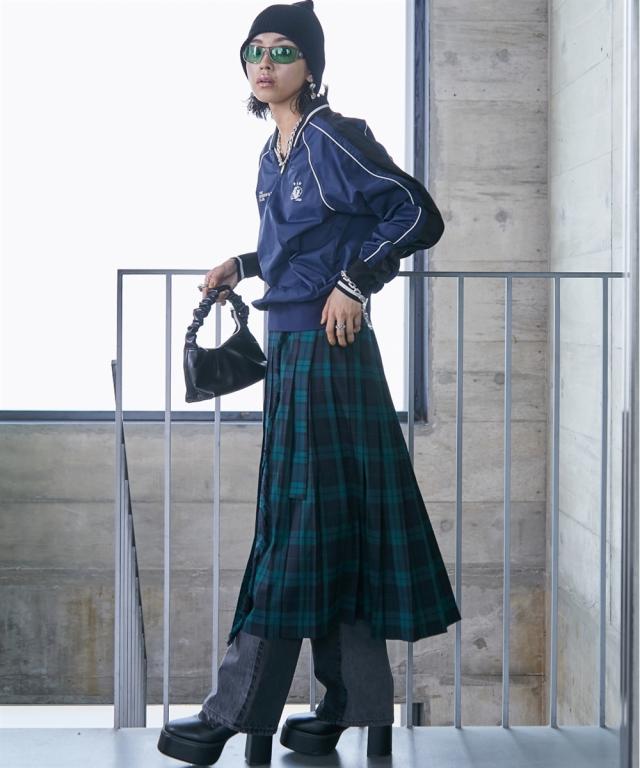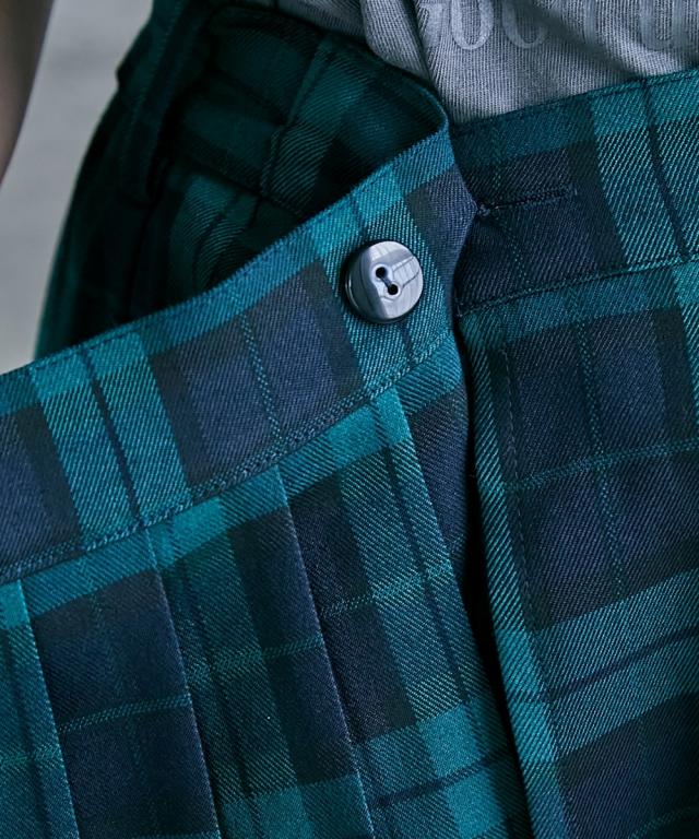 今シーズンマストバイな主役級プリーツスカート。 ■デザイン クラシックなチェック柄が気分のプリーツスカート。 ラップ仕様でウエストサイズがボタンで3段階に調節可能なので今季トレンドのパンツを合わせたレイヤードスタイルがキマル。 後ウエストゴムで、はき心地ラクラクなのがうれしいポイント。 ■素材 クラシック先染タータンチェック生地を使用。 ■おすすめのスタイリング スカートにブーツを合わせた秋らしいスタイルはもちろん、今季トレンドのスカートにパンツを合わせたレイヤードスタイルも楽しんでいただけます。