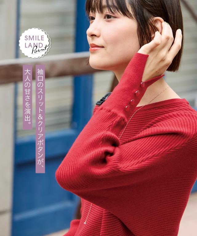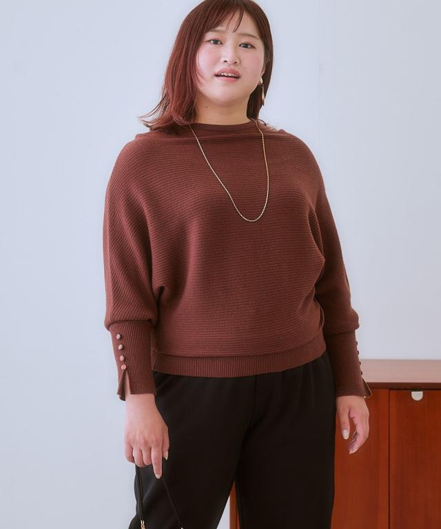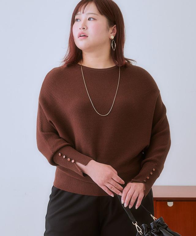 ニット セーター 大きいサイズ レディース 袖スリットボタンドルマン プルオーバー 制服 オフィス 産前 産後 L/LL/3L/4L/5L ニッセン nissen