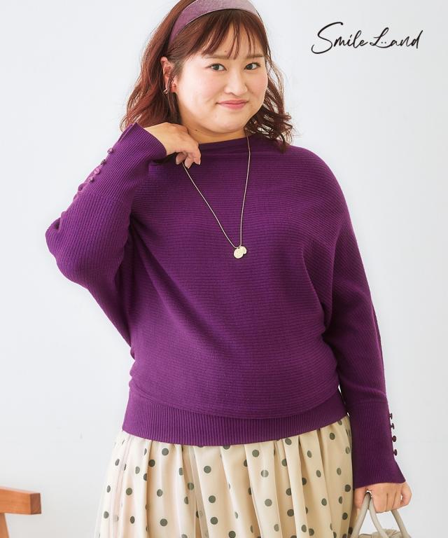 ニット セーター 大きいサイズ レディース 袖スリットボタンドルマン プルオーバー 制服 オフィス 産前 産後 6L/8L/10L ニッセン nissen