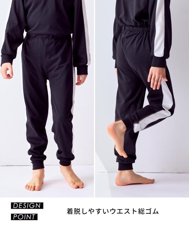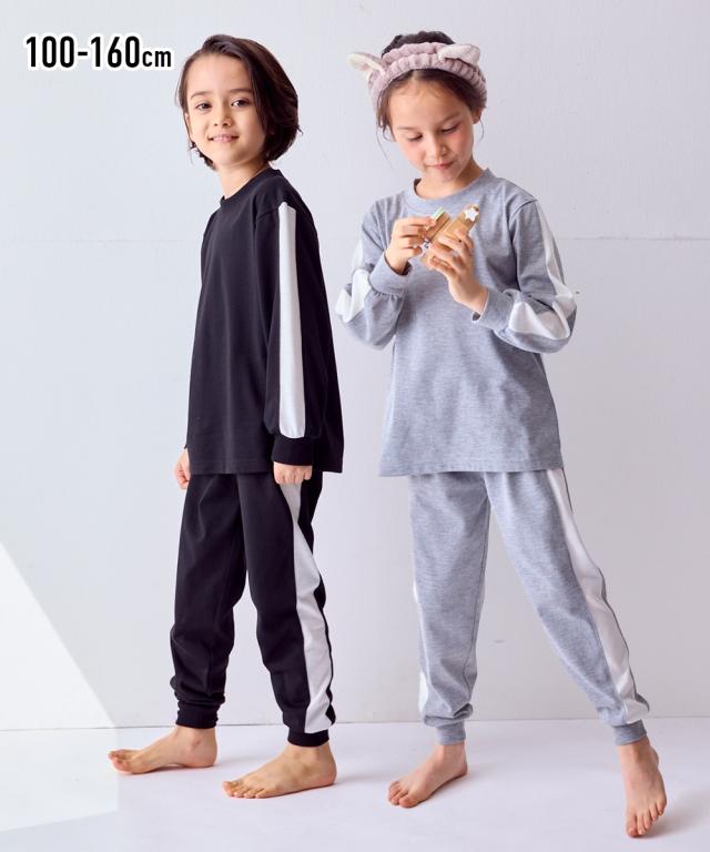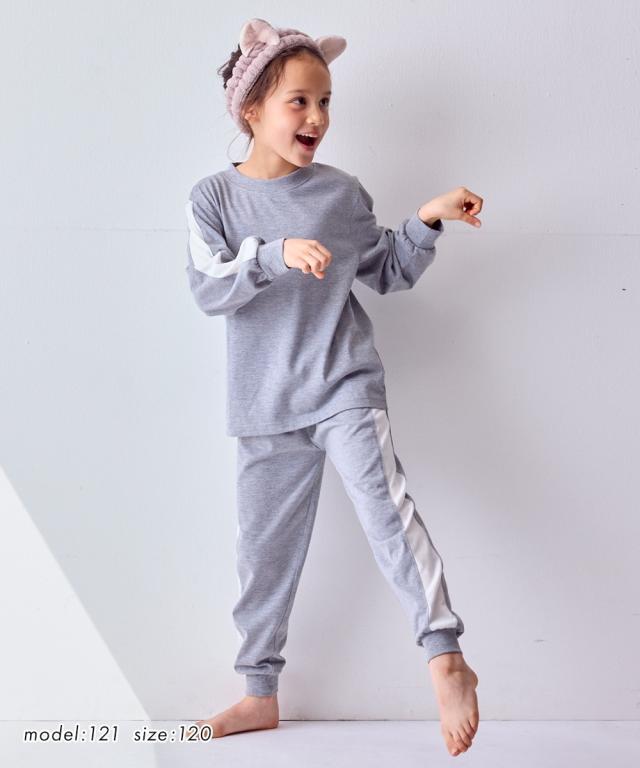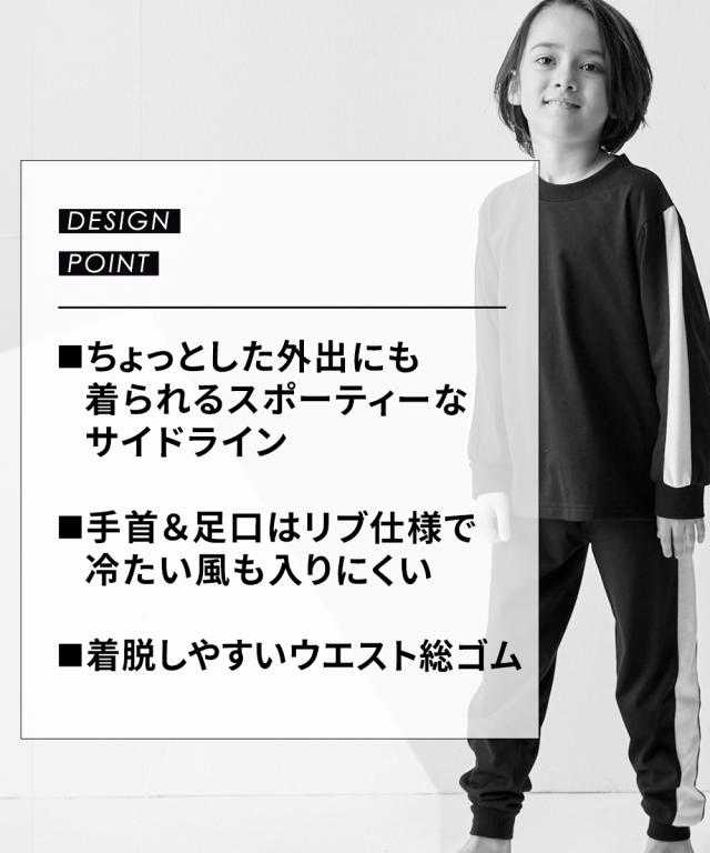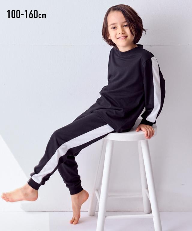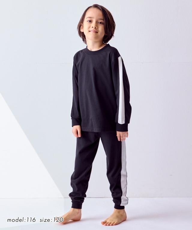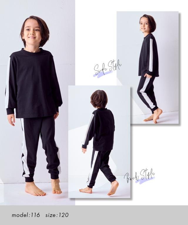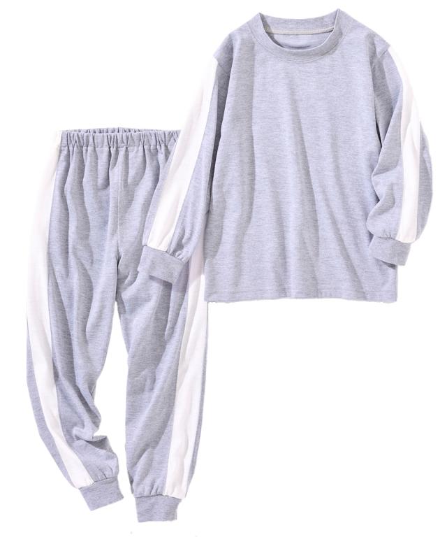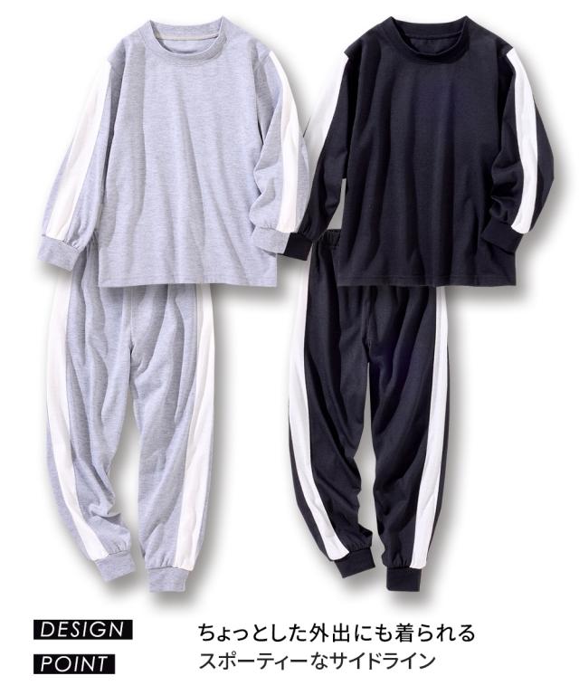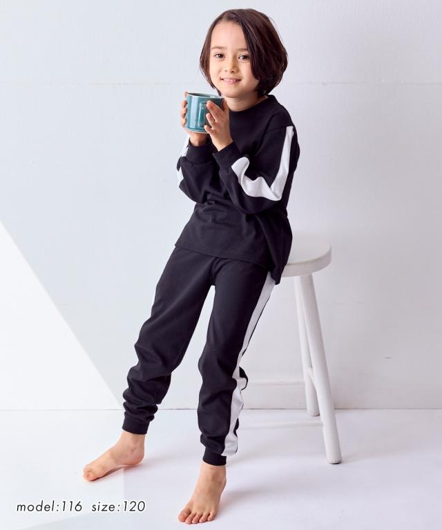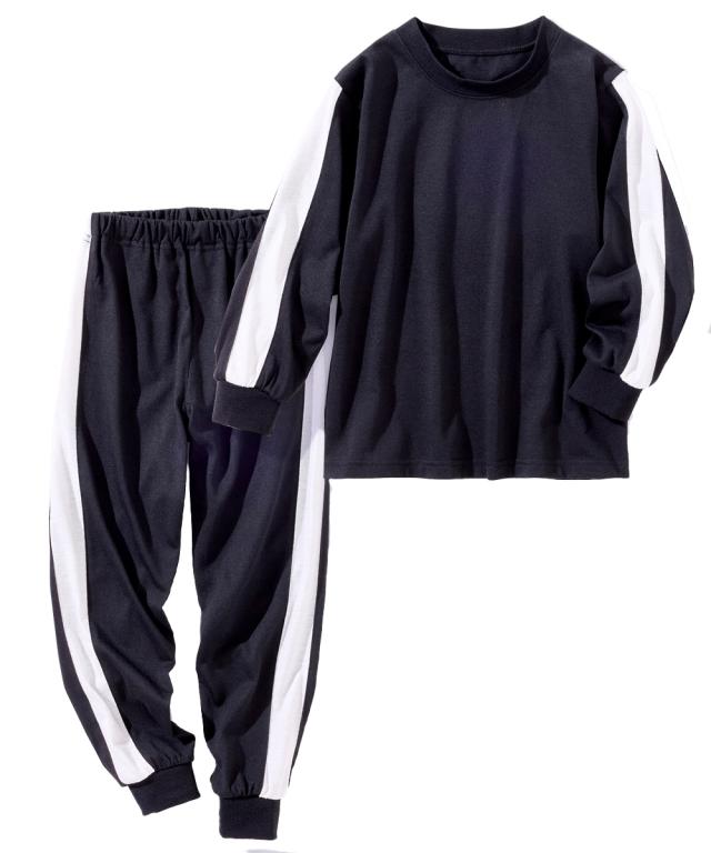 ちょっとした外出にも着られるスポーティなサイドラインがかっこいいルームウェア☆ ■デザイン スポーティなサイドラインがポイント 。 クールなデザインのルームウェアは宿泊学習などのお泊りにもおすすめ 本体のやわらかなカットソー素材と袖口・足口のリブ仕様で着心地も快適 ■素材 本体は肌ざわりやわらかなカットソー天竺素材