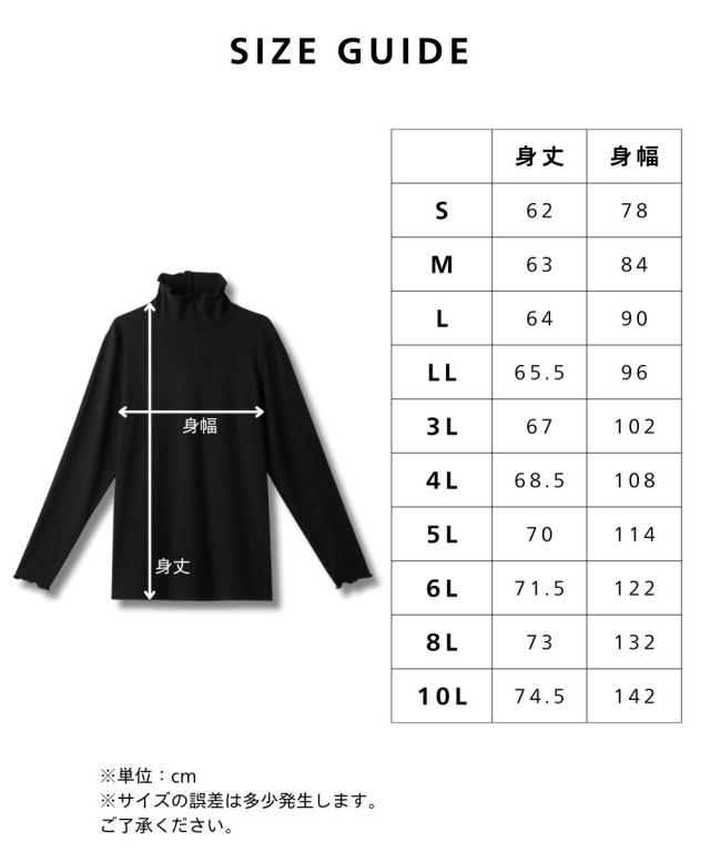 インナー レディース リブ ハイネック 長袖 肌着 女性 LL/3L