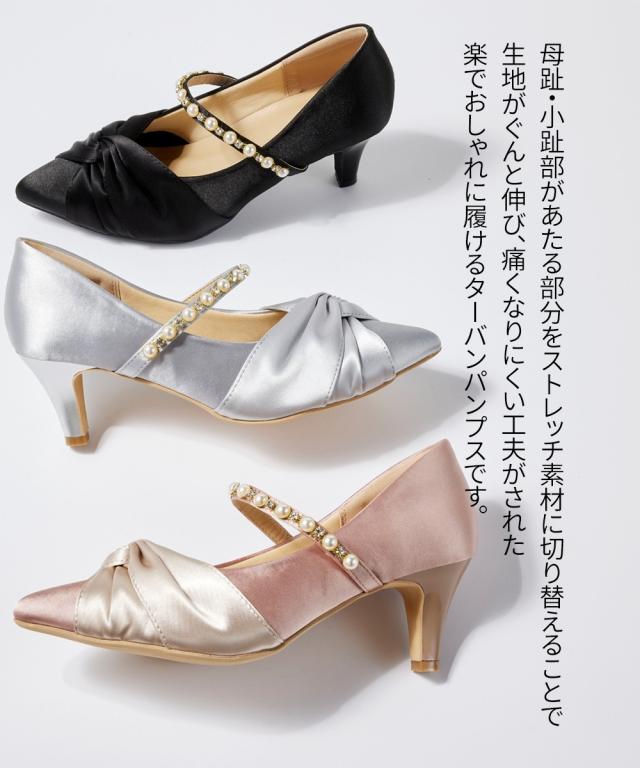 【ゆったり幅広】母趾・小趾部ストレッチターバンパンプス(ワイズ4E)