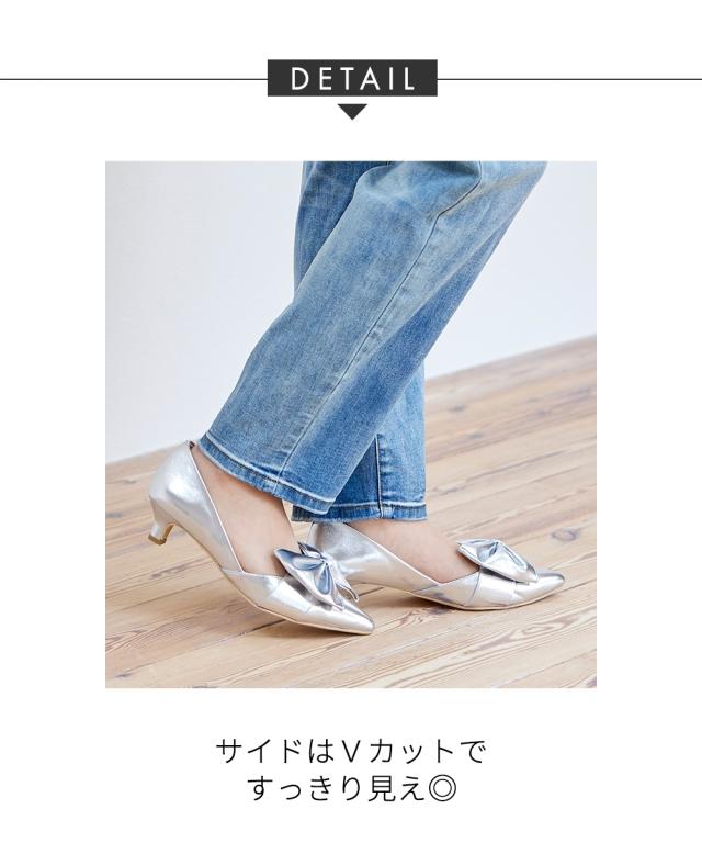 大きいサイズ レディース ゆったり幅広 痛いところにやさしい リボン デザイン パンプス ワイズ4E 靴 23.0〜23.5/24.0〜24.5cm ニッセン nissen