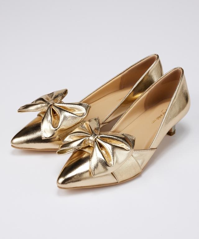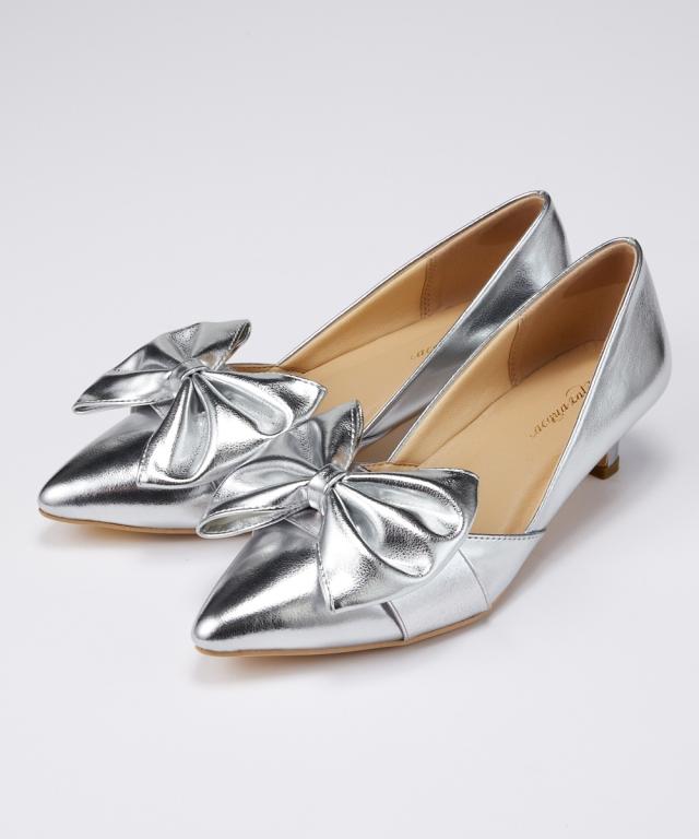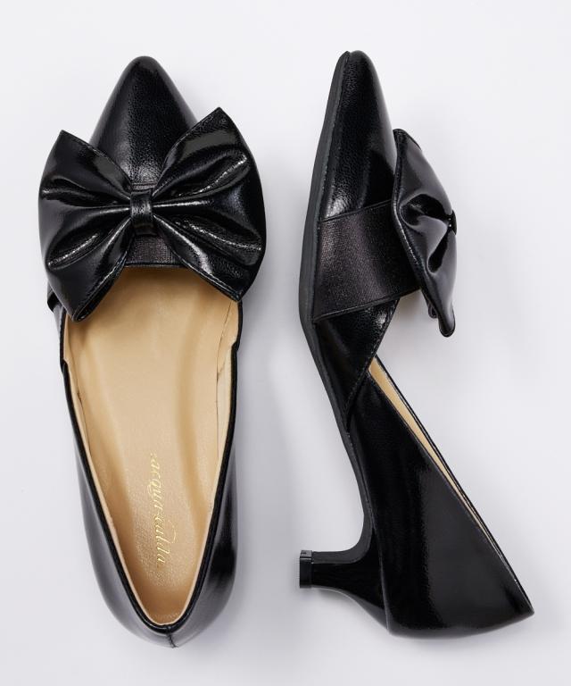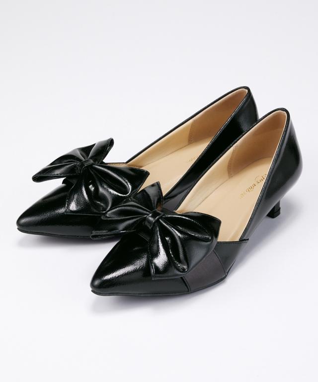 【ゆったり幅広】母趾・小趾部ストレッチリボンデザインパンプス(ワイズ4E)