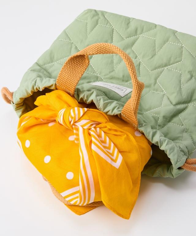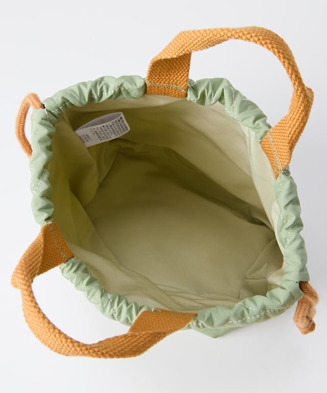品質=表地:ナイロン100% 中綿:ポリエステル100% 裏地:ポリエステル100%(キルティング)持ち手部分:綿50%・ポリエステル50%