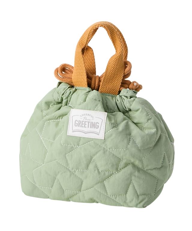 優しいくすみ系カラーのお弁当巾着バッグです ■デザイン ・軽くて丈夫なキルティング素材 ・キルティングの柄が〇☆◇になっていてオシャレ ・持ち手が配色になっているのもポイント ・巾着紐仕様なのでお子様でも開け閉めがカンタン