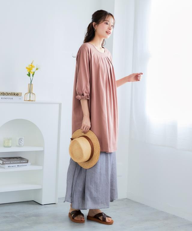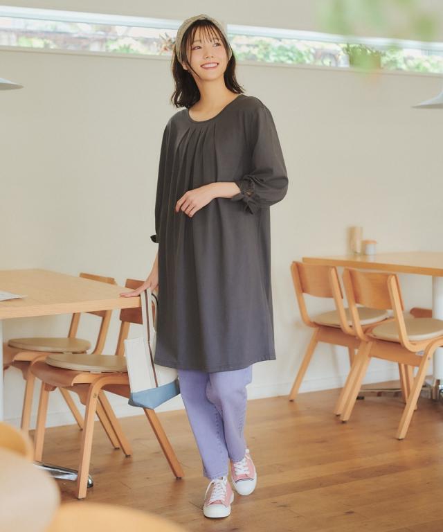 まだまだ暑いこの時期、気になる汗染みを目立ちにくくしてくれるうれしい1枚。綿100%でお肌に優しい 。ふんわり体型カバーしてくれる優秀アイテム ■デザイン 気になる腰〜お尻をしっかりカバーしてくれる丈とフレア&長め丈で安心です。タック使いで縦に落ちるのでスッキリ見えます。袖口のリボンがさりげなくかわいです。 ■素材 お肌に優しい綿100%で快適な着心地です。汗を素早く吸ってくれるので中でたれにくく快適です。外にも染み出しにくいので暑い日のお出かけや暖房時の脇汗も恥ずかしくありません。 ■おすすめのスタイリング いつものボトムに合わせるだけで簡単にかわいくきまります。涼しくなってきたら中にタートルを重ねてもかわいいので長く使えて便利
