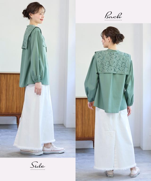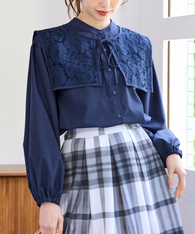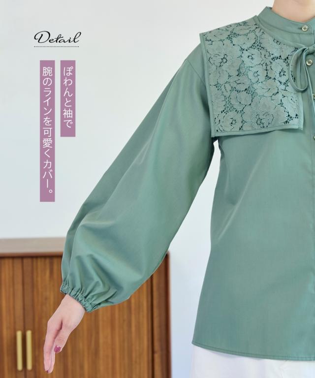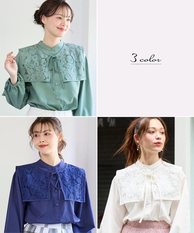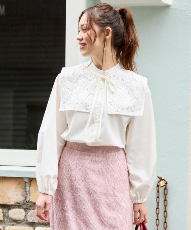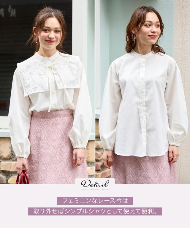 取り外し可 。2WAYの着こなしが可能なビッグ衿ブラウス ■デザイン ロマンティックなレースで魅せる、華やかなビッグレースカラーブラウス。衿を取り外してベーシックな着こなしも 。首元にさっとレース襟を巻けば、大人かわいいコーデが完成。ぽわん袖で袖口ゴム仕様なのでプッシュアップも決まる。もちろん、レースカラーは単品でも使用OKです。 ■素材 さらっとしたポリエステル素材。程よいハリ感のある素材です。 ■おすすめのスタイリング 絶妙な丈感で、トップスインでもアウトでも楽しめる優秀アイテム。いつものデニムやパンツに合わせれば、カジュアルな雰囲気漂う大人の甘辛コーデに。ロングスカートやワンピースと合わせれば、エレガントスタイルに。衿単品でも使えるし、ブラウスも2WAYの着こなしが可能だし、色々な着こなしが可能なブラウスだからコスパ抜群です 。