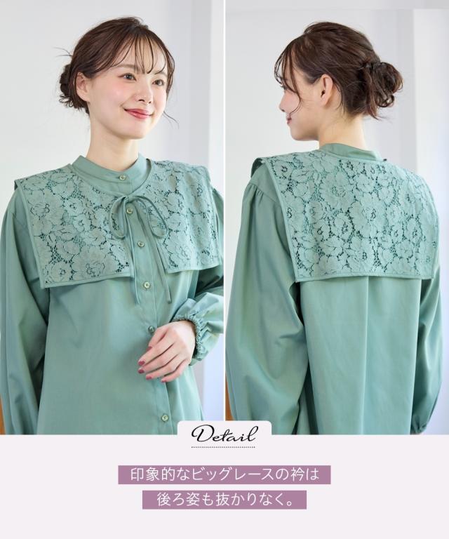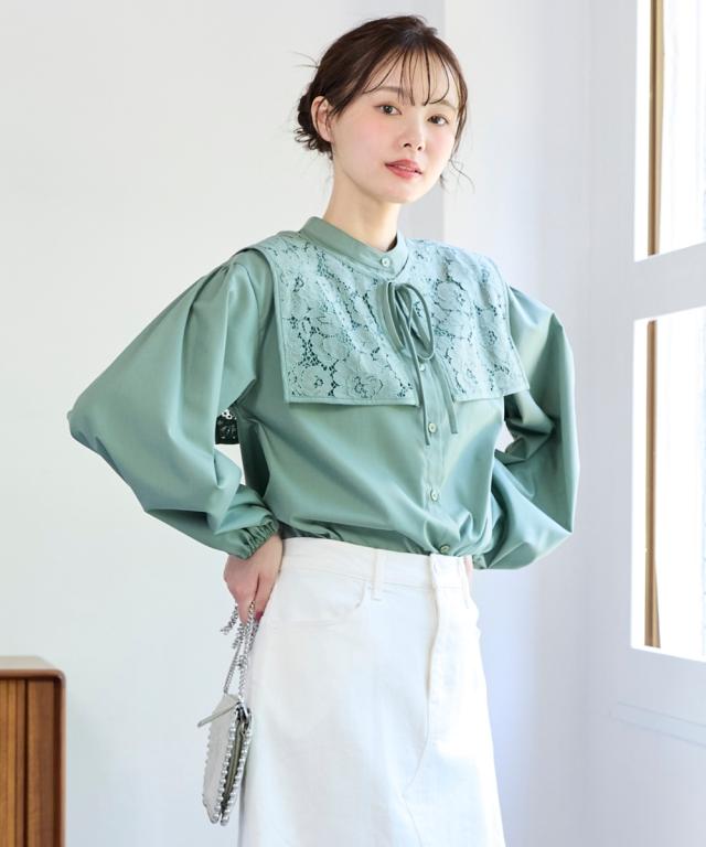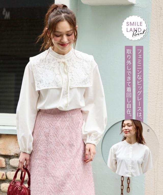 取り外し可 。2WAYの着こなしが可能なビッグ衿ブラウス ■デザイン ロマンティックなレースで魅せる、華やかなビッグレースカラーブラウス。衿を取り外してベーシックな着こなしも 。首元にさっとレース襟を巻けば、大人かわいいコーデが完成。ぽわん袖で袖口ゴム仕様なのでプッシュアップも決まる。もちろん、レースカラーは単品でも使用OKです。 ■素材 さらっとしたポリエステル素材。程よいハリ感のある素材です。 ■おすすめのスタイリング 絶妙な丈感で、トップスインでもアウトでも楽しめる優秀アイテム。いつものデニムやパンツに合わせれば、カジュアルな雰囲気漂う大人の甘辛コーデに。ロングスカートやワンピースと合わせれば、エレガントスタイルに。衿単品でも使えるし、ブラウスも2WAYの着こなしが可能だし、色々な着こなしが可能なブラウスだからコスパ抜群です 。