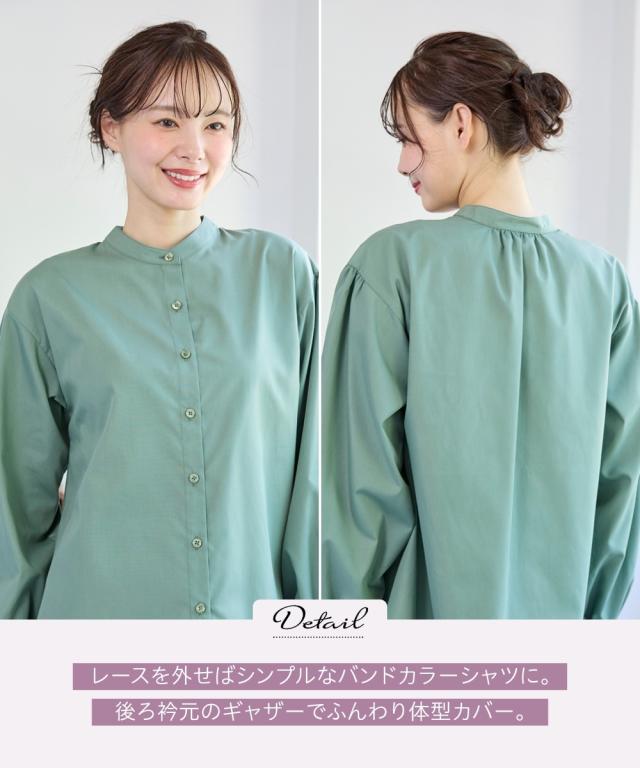 品質=[本体]ポリエステル95%・綿5%[レース部]ナイロン40%・綿35%・レーヨン25% 前ボタン開き 袖口ゴム入透け感:なし(淡色はやや透け感あり)