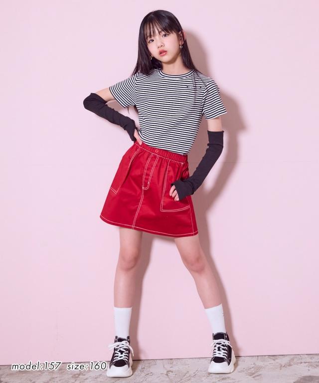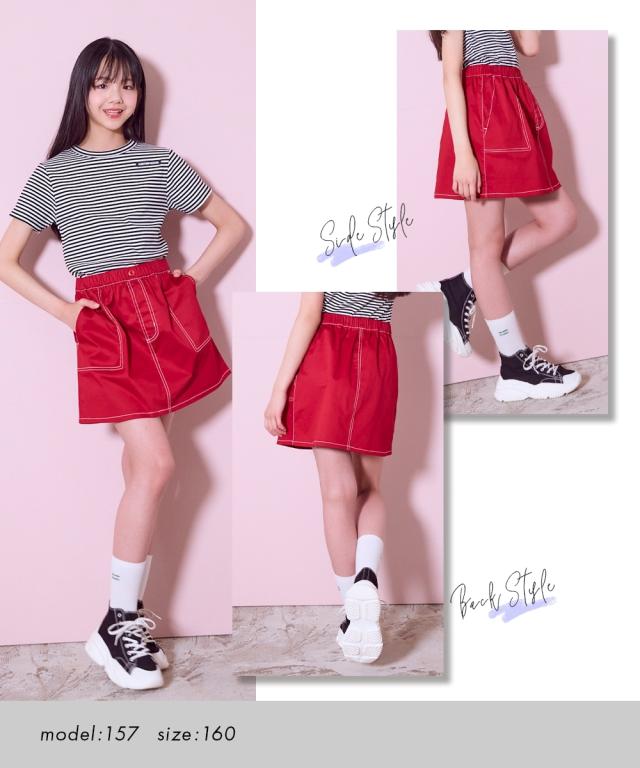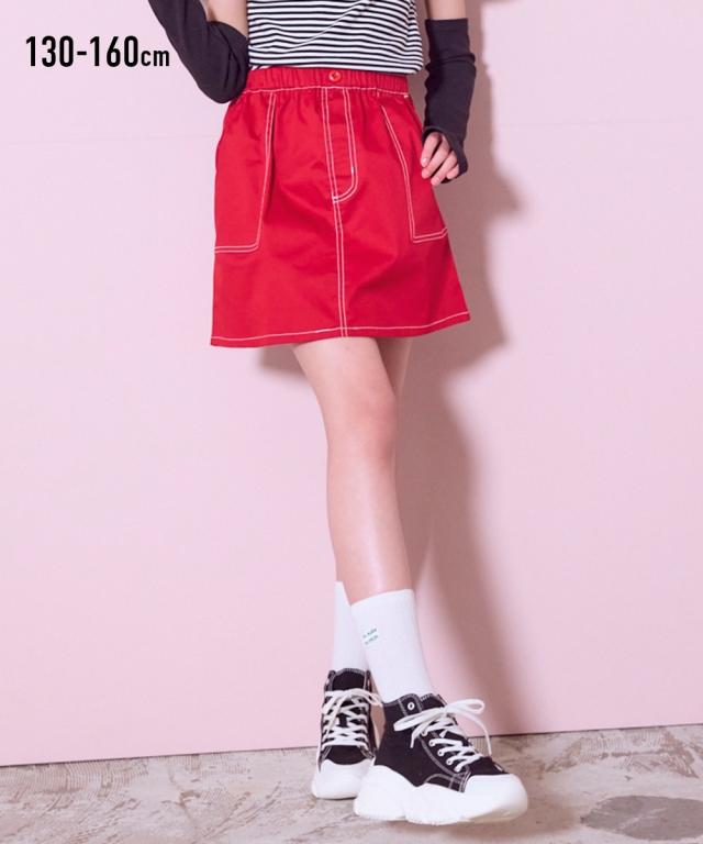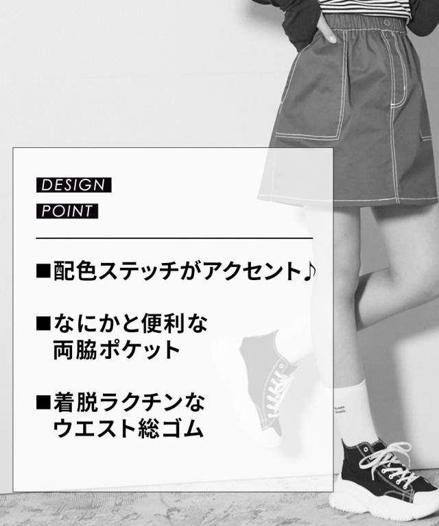 ステッチがポイントのクールなスカート タイトめシルエットだからコーデしやすくヘビロテ確実 ■デザイン ポケットのステッチと飾りボタンがかわいいポイント タイトめのシルエットがコーデの幅を広げます ウエスト総ゴムではきやすい ■素材 ほどよい厚みの布帛素材 ■おすすめのスタイリング カジュアルコーデやクールなコーデ、幅広いコーディネートを楽しめるスカートです<
